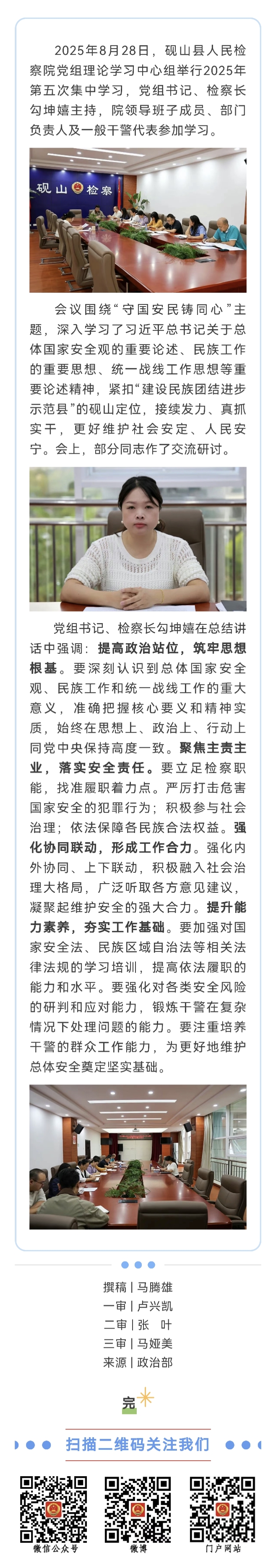 砚山县人民检察院党组理论学习中心组举行2025年第五次集中学习