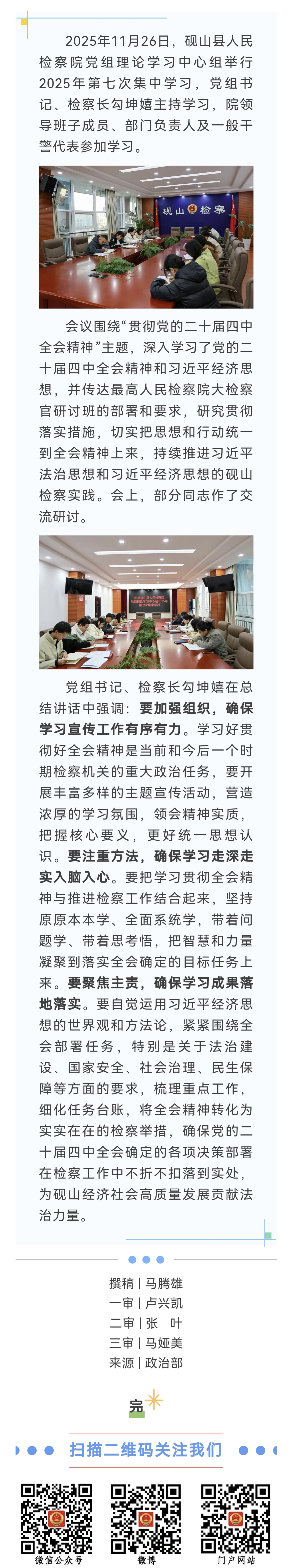 砚山县人民检察院党组理论学习中心组举行2025年第七次集中学习