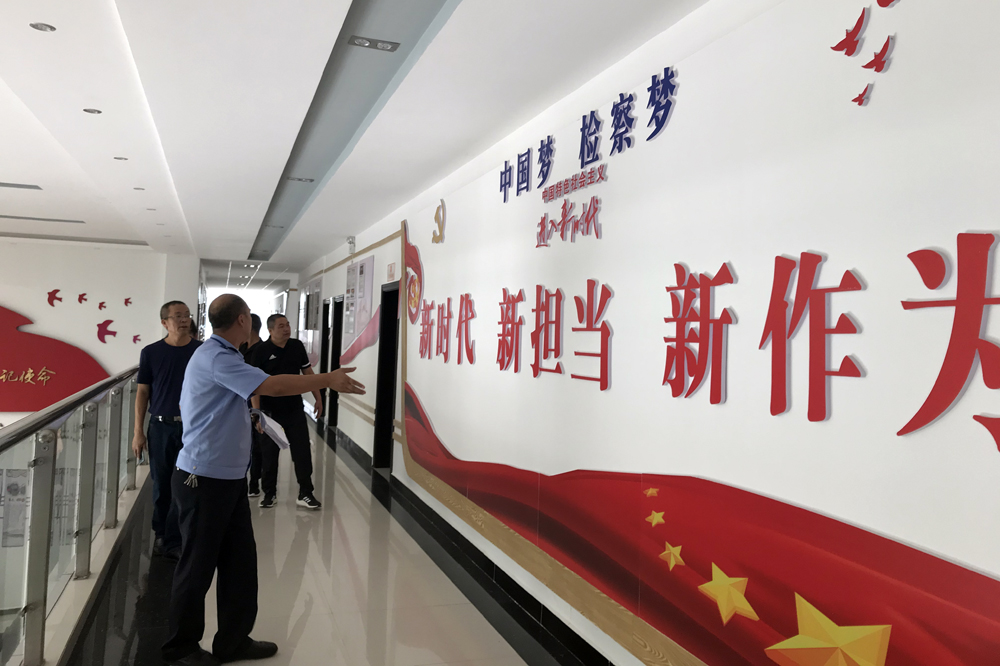 测评共有两个环节。先是开展问卷调查,测评组现场启封调查表,检察干警结合工作实际如实开展测评。随后是进行实地查看,在检察干警的指引下,测评组逐一查看了中国特色社会主义和中国梦、社会主义核心价值观、基层党组织建设、道德建设、诚信建设、法治建设、志愿服务等各个方面的宣传专栏和宣传展板,结合展板内容,干警向测评组详细介绍了三年来创建工作的措施、取得的成效和打造的特色亮点等。