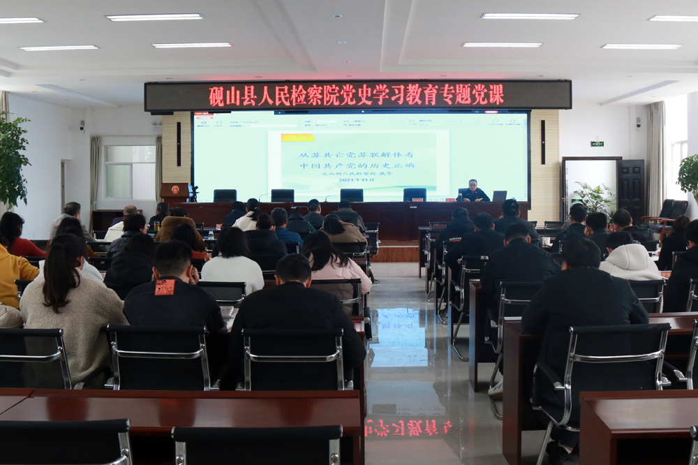 上午9时,专职检委委员戴华为全院干警上了一堂深刻的党史学习教育专题党课,戴华委员以“从苏共亡党苏联解体看中国共产党的历史正确”为主题,从六个方面剖析了苏共亡党苏联解体的原因,从三个方面阐明了中国共产党为什么会日益兴盛、越大越强,最后就“必须高度警惕以美国为首的西方国家对我国的颠覆和破坏活动”进行了分析和强调。通过讲授专题党课,激发干警参与党史学习教育的主动性和积极性,教育引导干警不忘检察初心使命,不负检察为民职责。