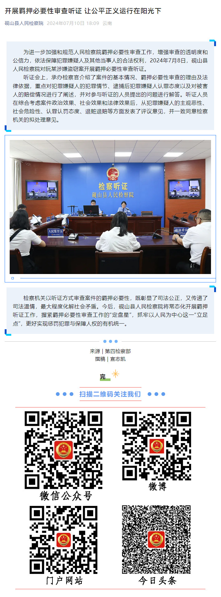 开展羁押必要性审查听证 让公平正义运行在阳光下