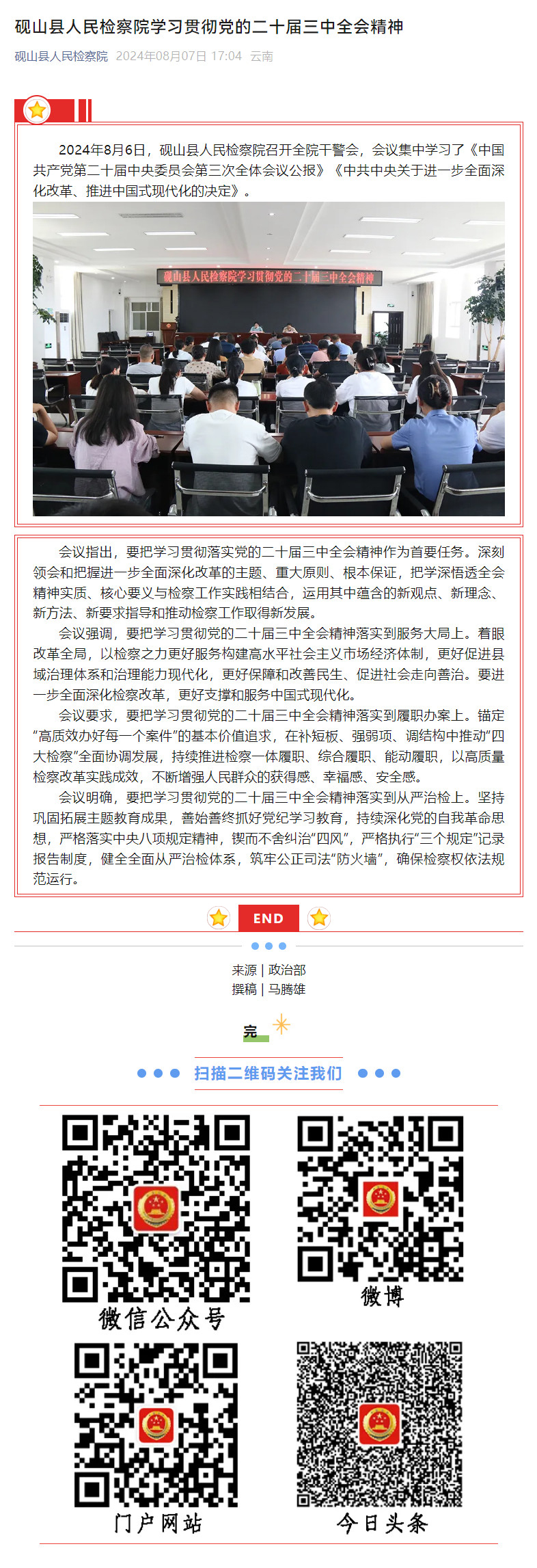 砚山县人民检察院学习贯彻党的二十届三中全会精神